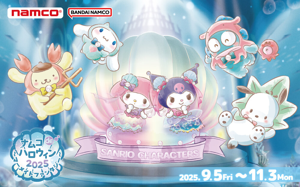 バンダイナムコアミューズメントが毎年恒例で展開するサンリオとのハロウィンコラボ。2025年もハロウィンシーズンに合わせて「サンリオキャラクターズ ナムコdeハロウィン2025」が、開催されます。今回のテーマは 「マーメイドファンタジー」。シナモロール、マイメロディ、クロミ、ポムポムプリン、ポチャッコ、そして人気急上昇中のハンギョドンが、海の生き物や人魚になりきった特別なデザインで登場します。