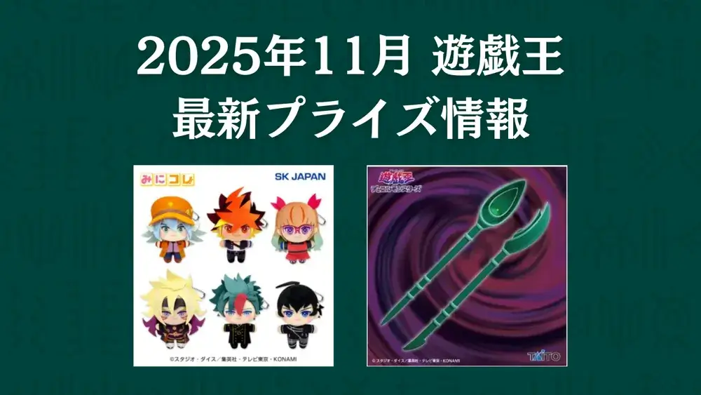 ゲームセンターのUFOキャッチャーやオンラインクレーンアプリ(オンクレ)で取れる2025年11月に登場予定の『遊戯王』のフィギュアやぬいぐるみなどのプライズ情報をまとめました!