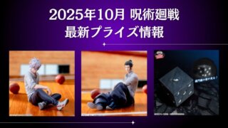 ゲームセンターのUFOキャッチャーやオンラインクレーンアプリ(オンクレ)で取れる2025年10月に登場予定の『呪術廻戦』のフィギュアやぬいぐるみなどのプライズ情報をまとめました!虎杖悠仁、夏油傑、真人、両面宿儺など人気の呪術廻戦のプライズが...