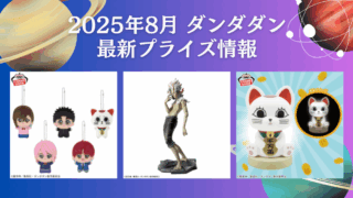 ゲームセンターのUFOキャッチャーやオンラインクレーンアプリ(オンクレ)で取れる2025年9月に登場予定の『ダンダダン』のフィギュアや雑貨などのプライズ情報をまとめました!ダンダダンのプライズが取れるオンラインクレーンゲーム(オンクレ)の情...