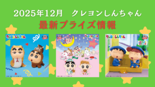 ゲームセンターのUFOキャッチャーやオンラインクレーンアプリ(オンクレ)で取れる2025年12月に登場予定の『クレヨンしんちゃん』のぬいぐるみや雑貨などのプライズ情報をまとめました!クレヨンしんちゃんのプライズが取れるオンラインクレーンゲー...